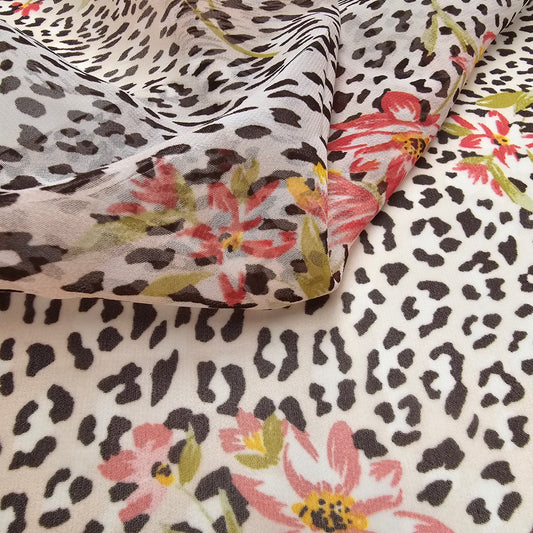 Bella - Leopard/floral printed chiffon- sold by 1/2mtr