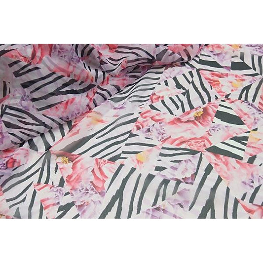 Estonia -zebra striped/floral printed woven chiffon - sold by 1/2mtr