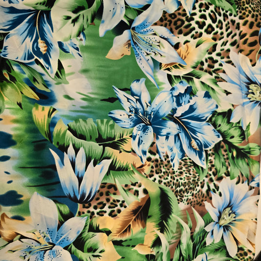 Leopard/hibiscus printed satin fabric- 1.60mtrs