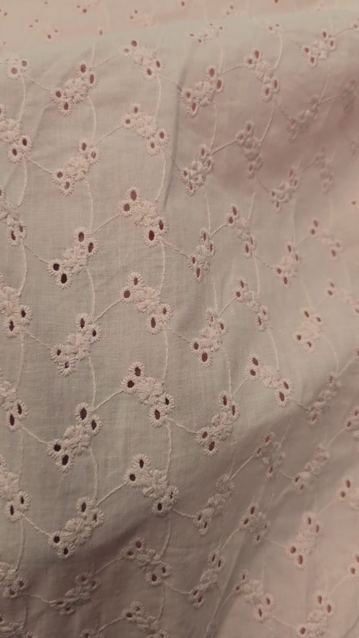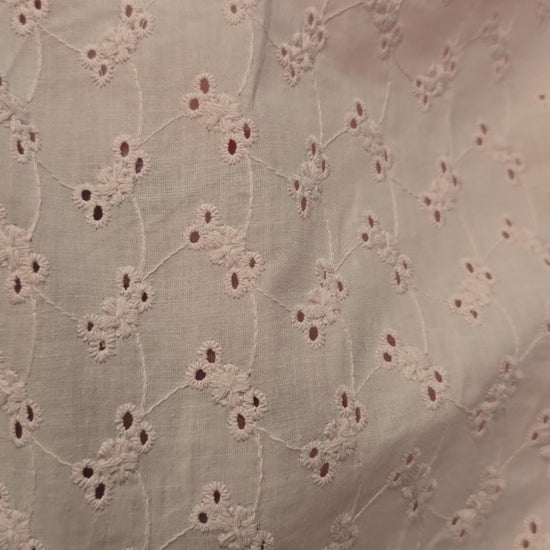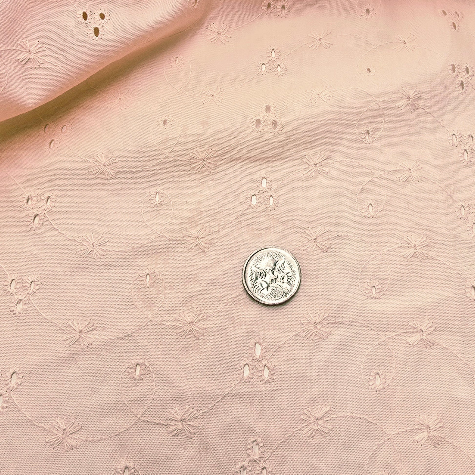 Beautiful broidery anglaise woven fabric in a light apricot shade.