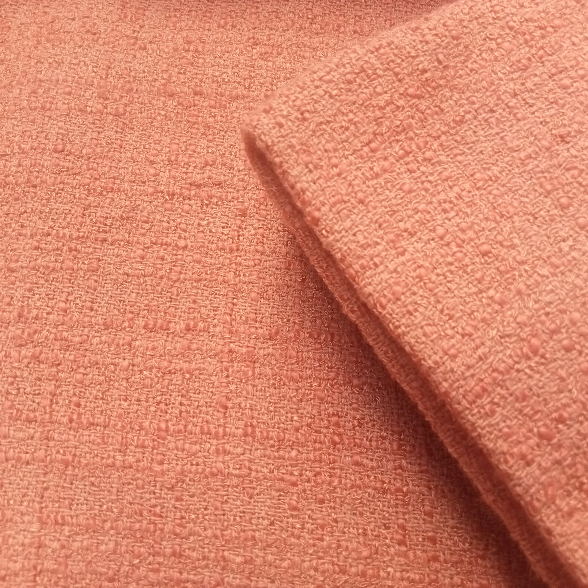 Beautiful apriot shade boucle woven with a slub yarn
