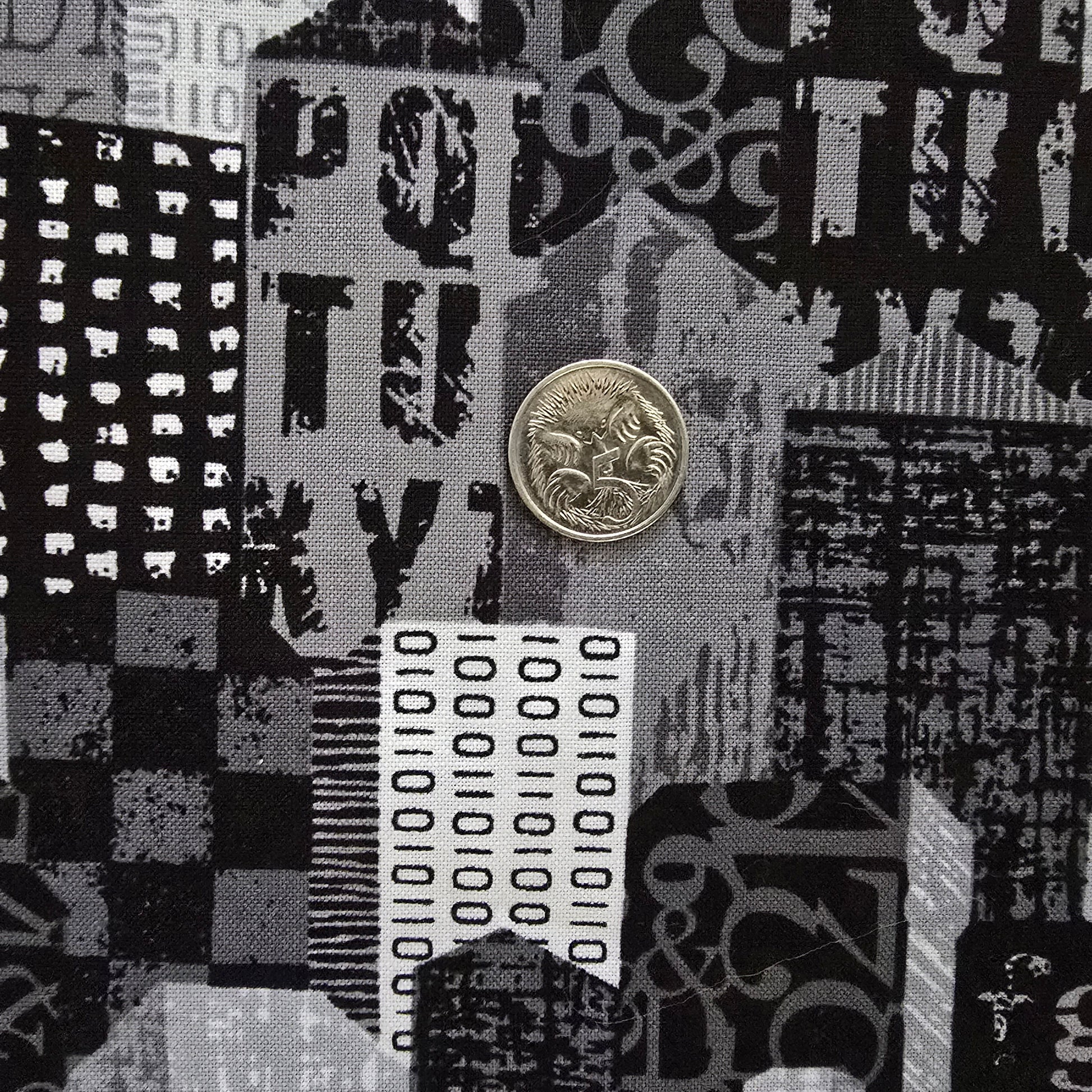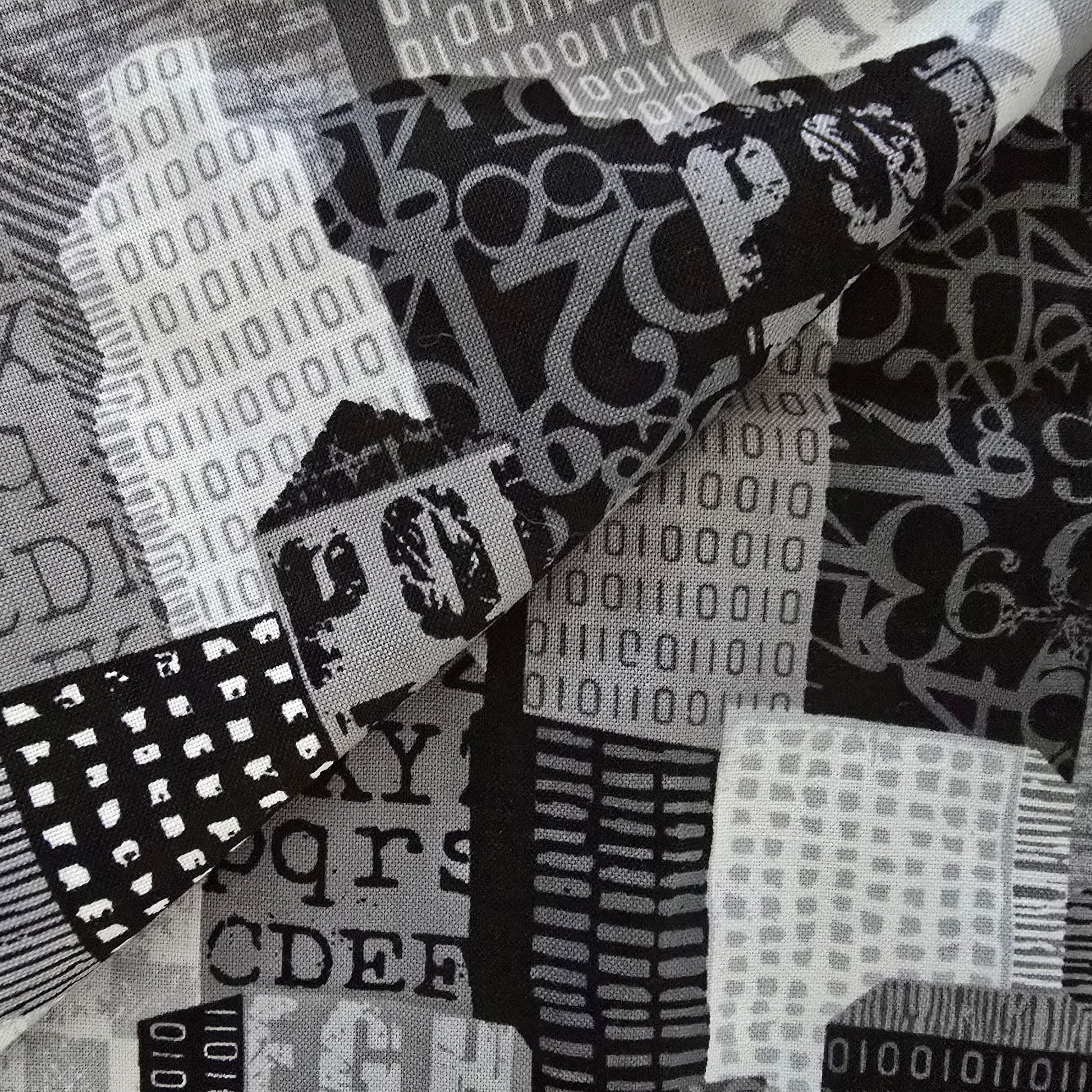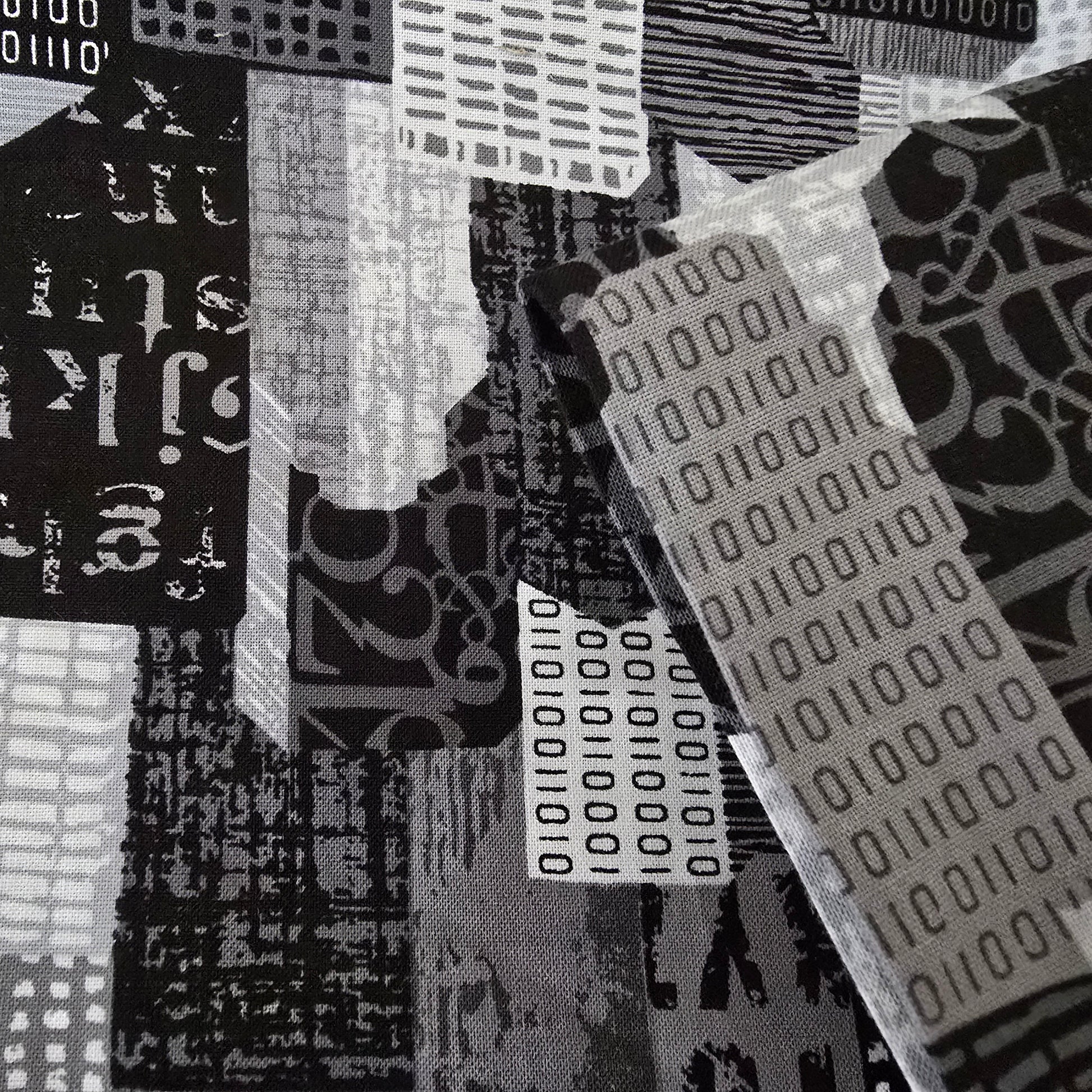 This fabric features a striking urban industrial print with a ditigal glitch. Using a monochromatic grey scale palette, consisting of black, grey, charcoal and white. Printed by P&B Textiles