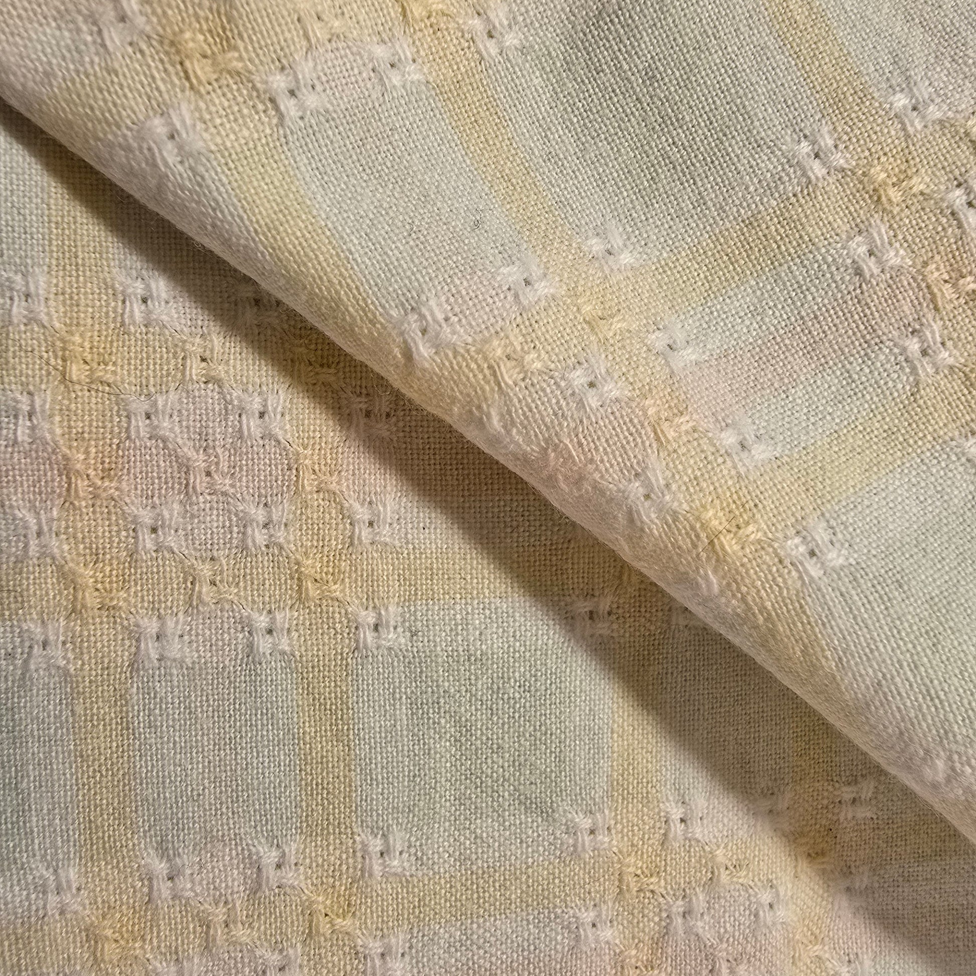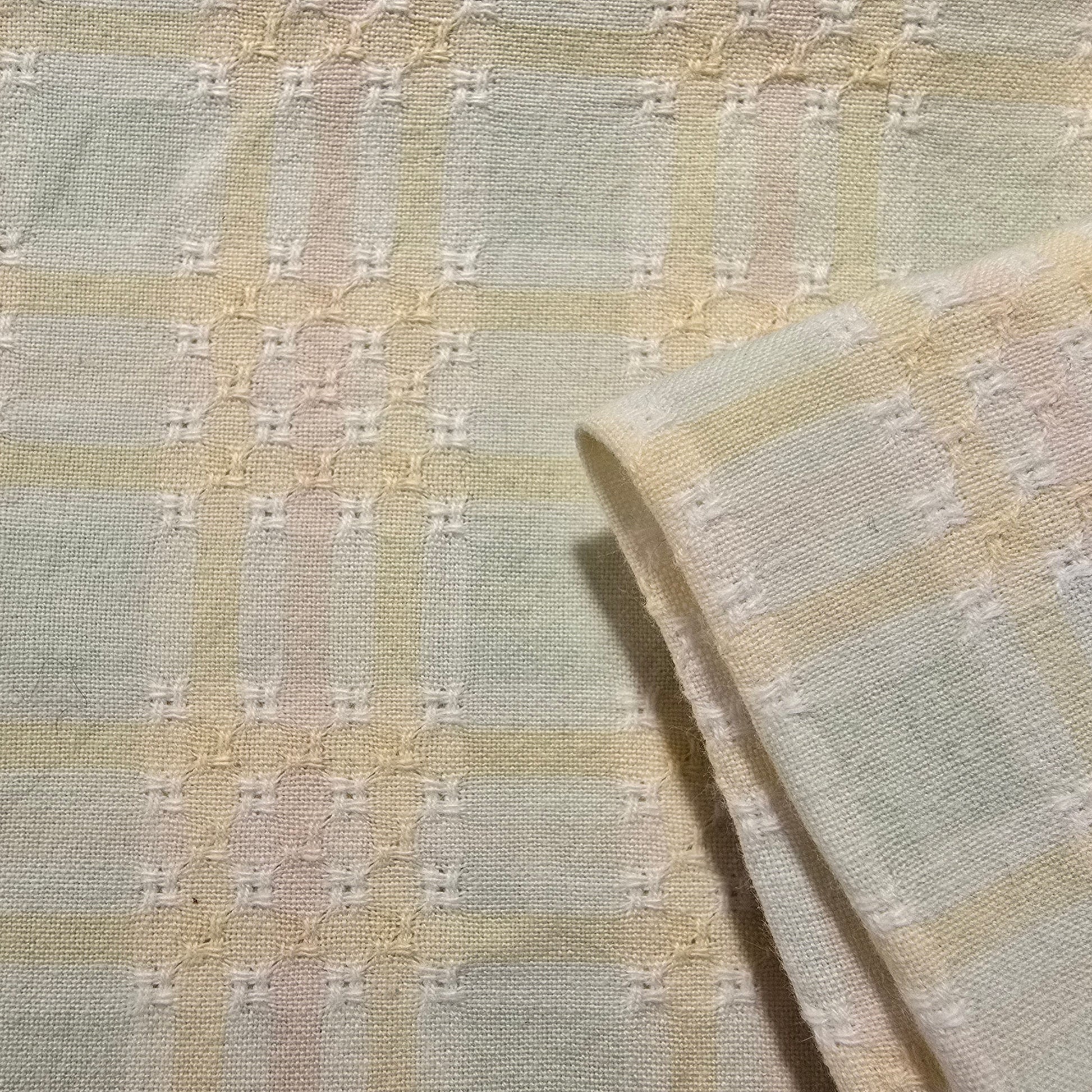 A Huck weave forms a grid-like pattern of raised threads, creating the square-shaped textured clusters.