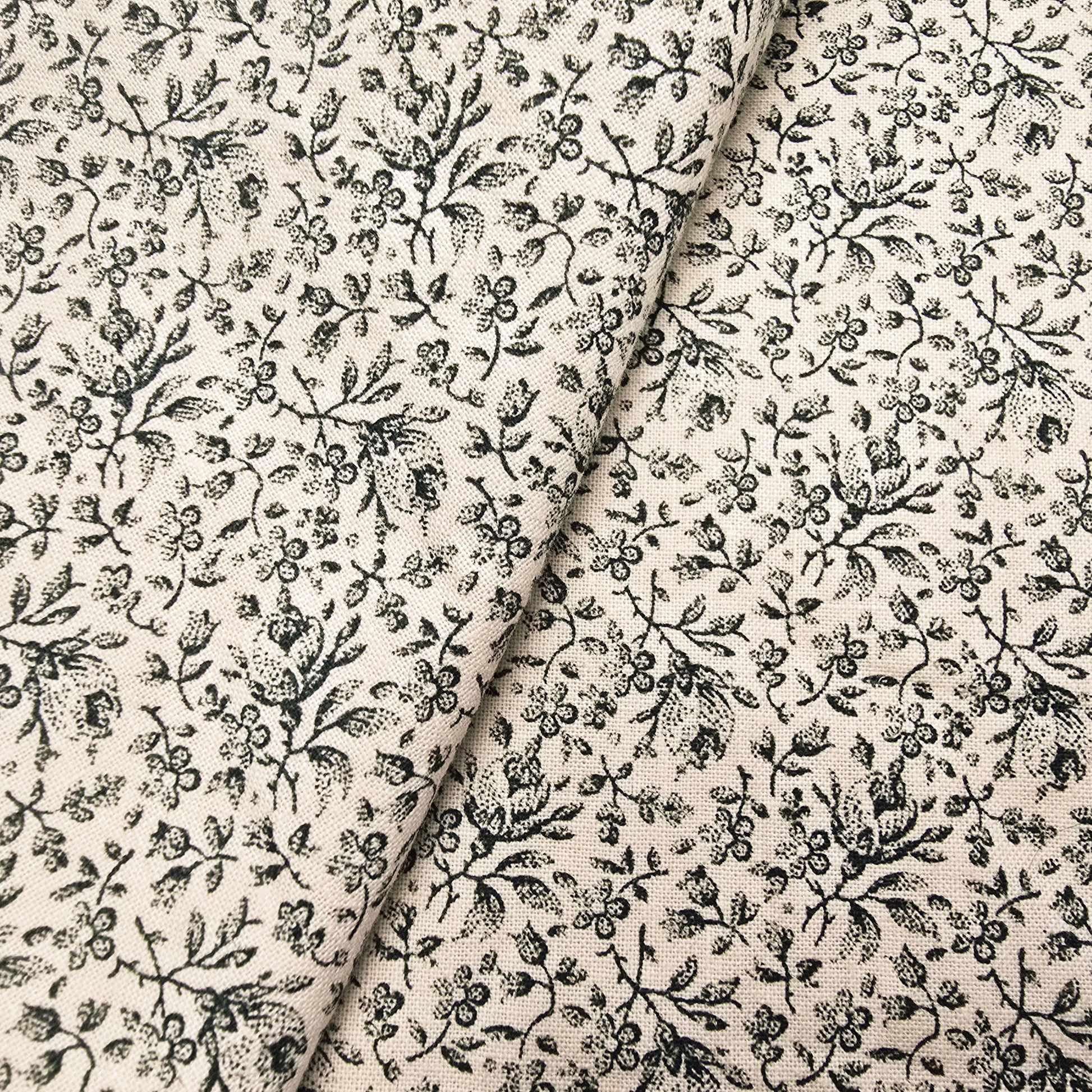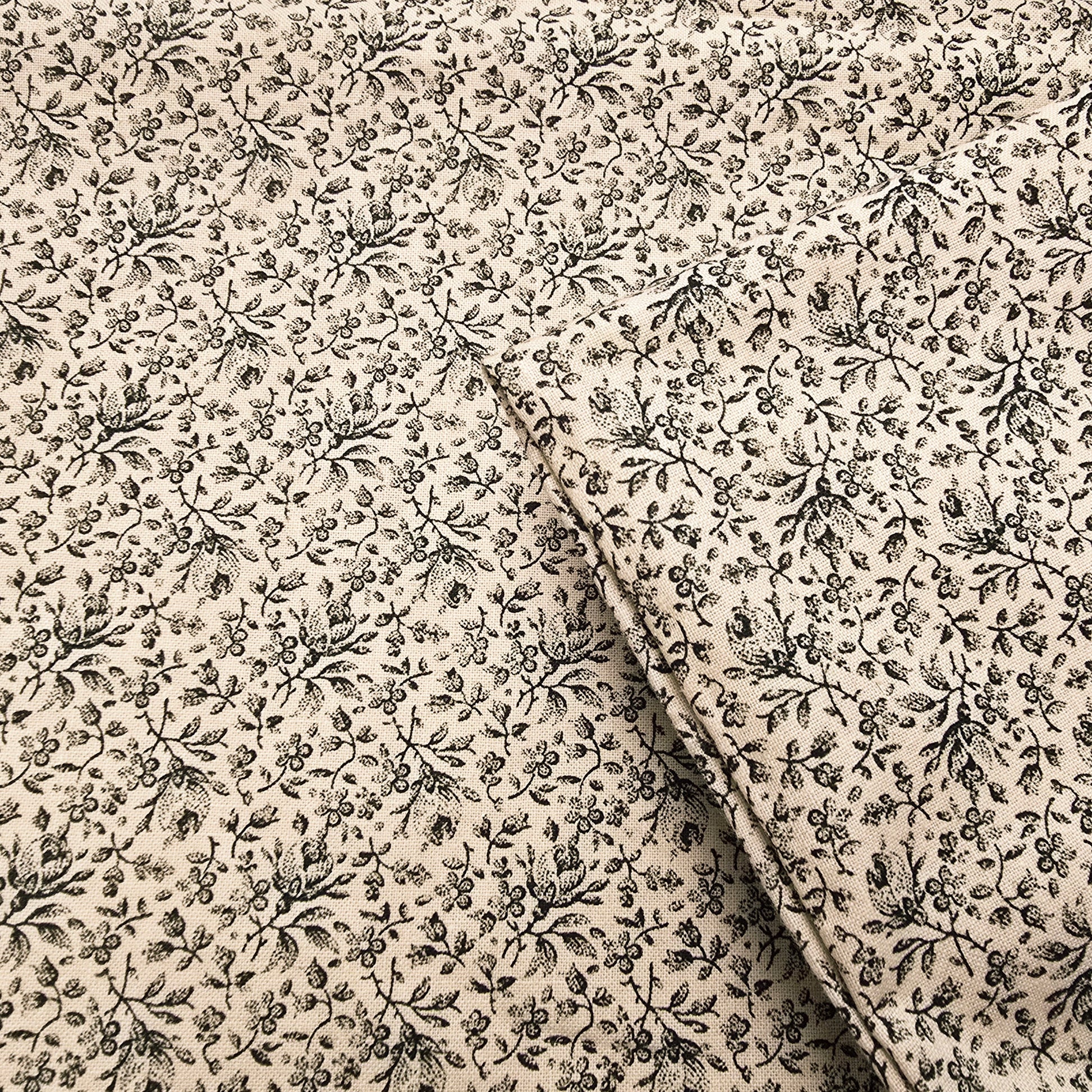- A lovely vintage woven cotton fabric. A classic example of the "english country house" aesthetic that made the brand famous. A delicate floral print in mute bottle green shade on a ruch cream base color. tiny blossoms, and curling leaves.
