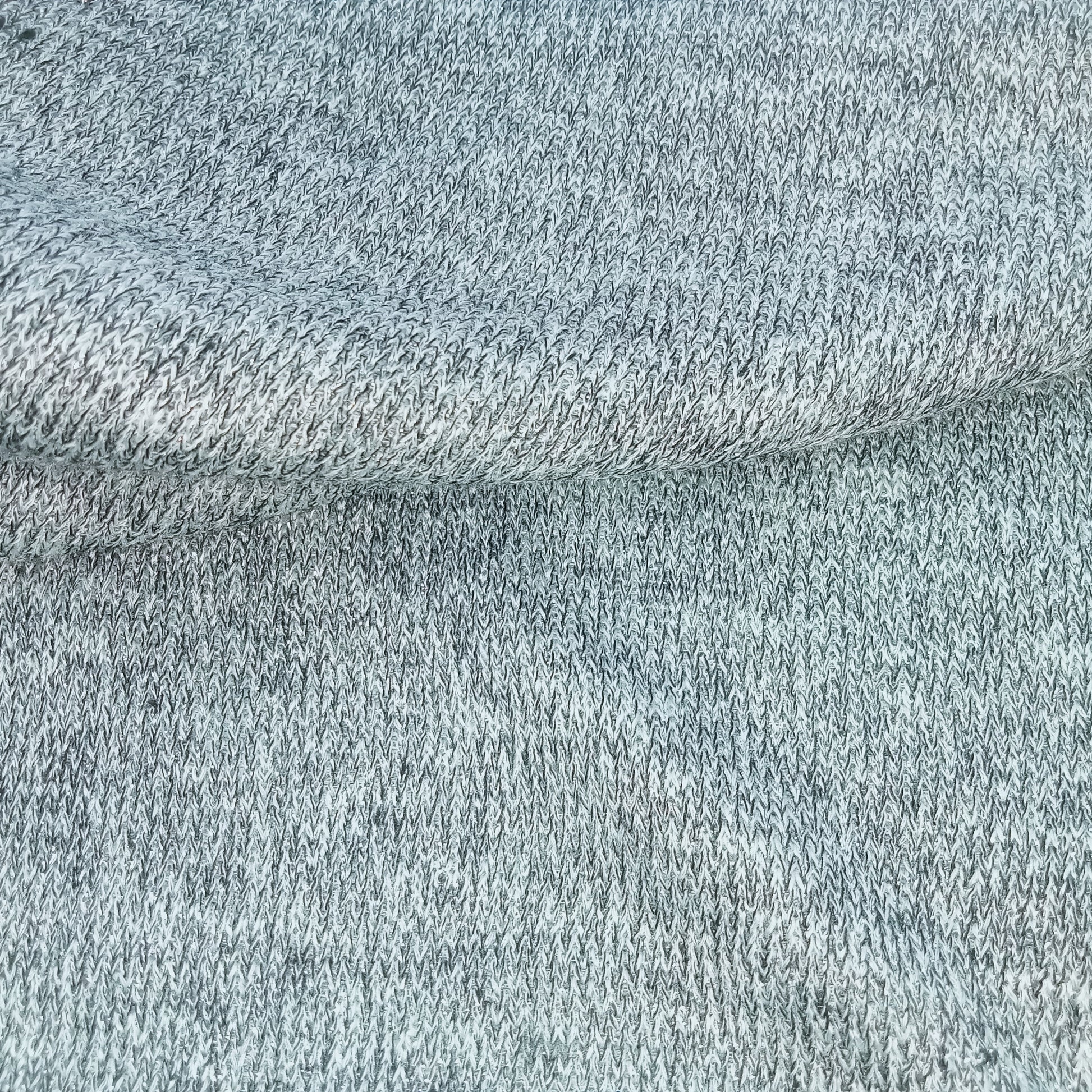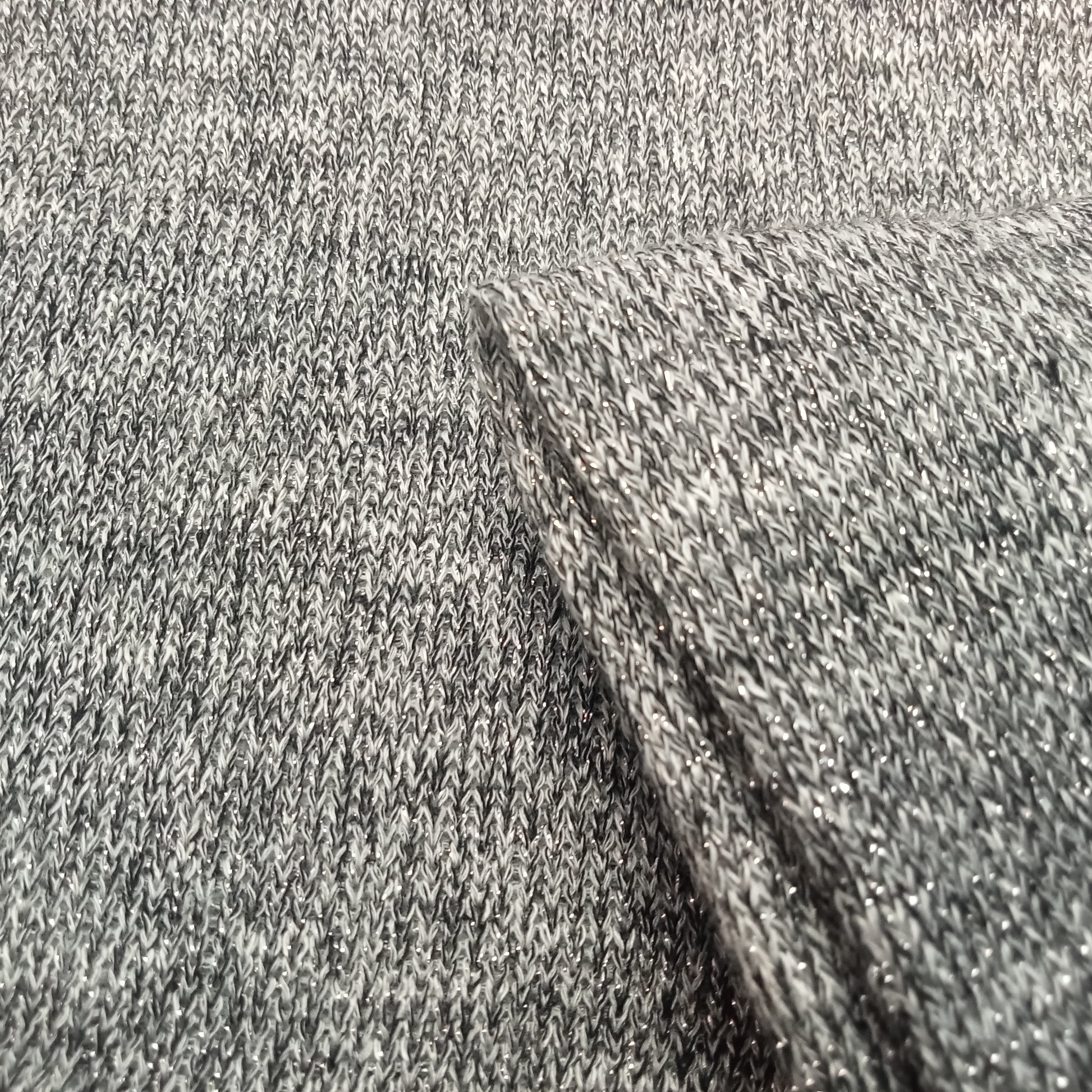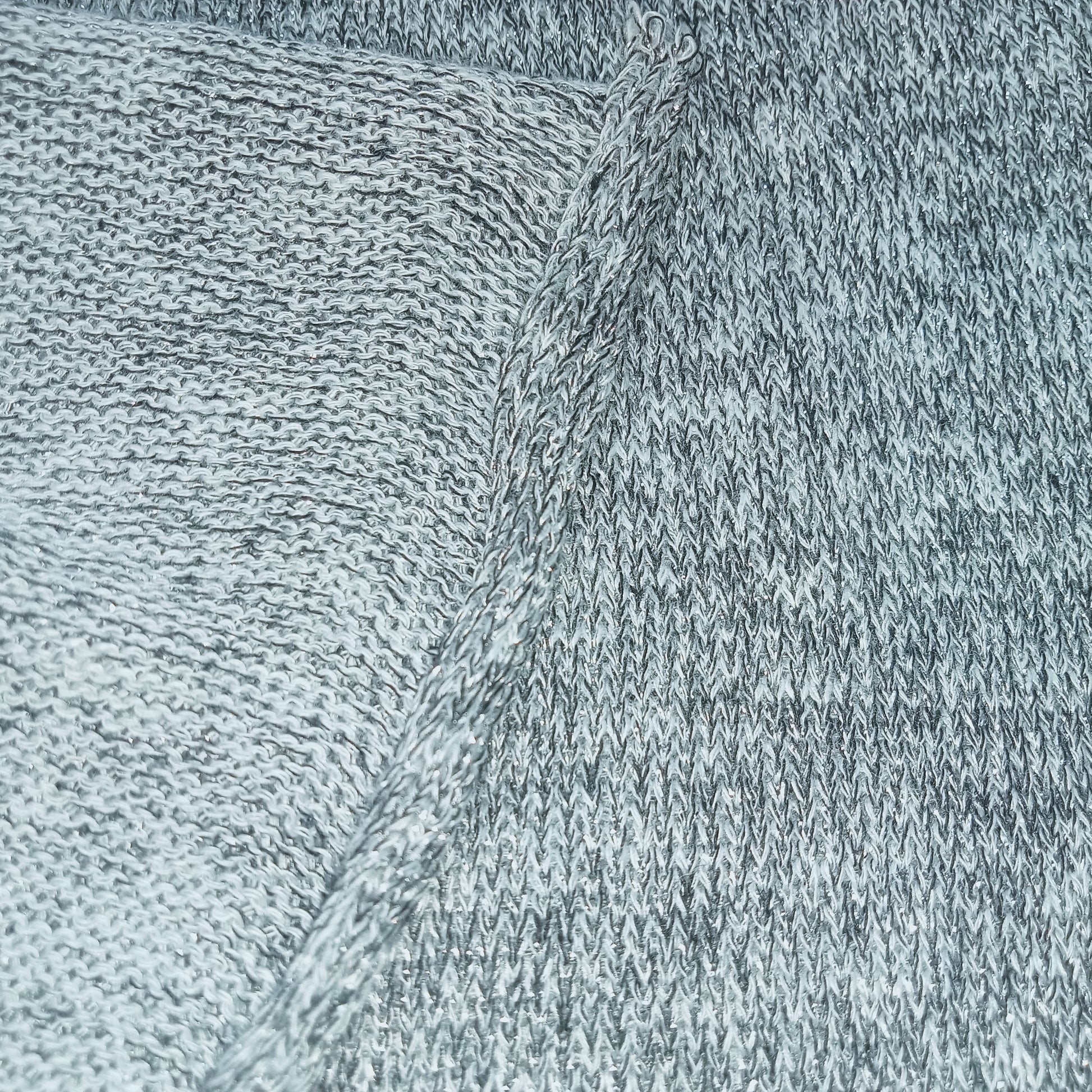 Light weight Marle knit fabric with a silver yarn creating a subtle shimmer.