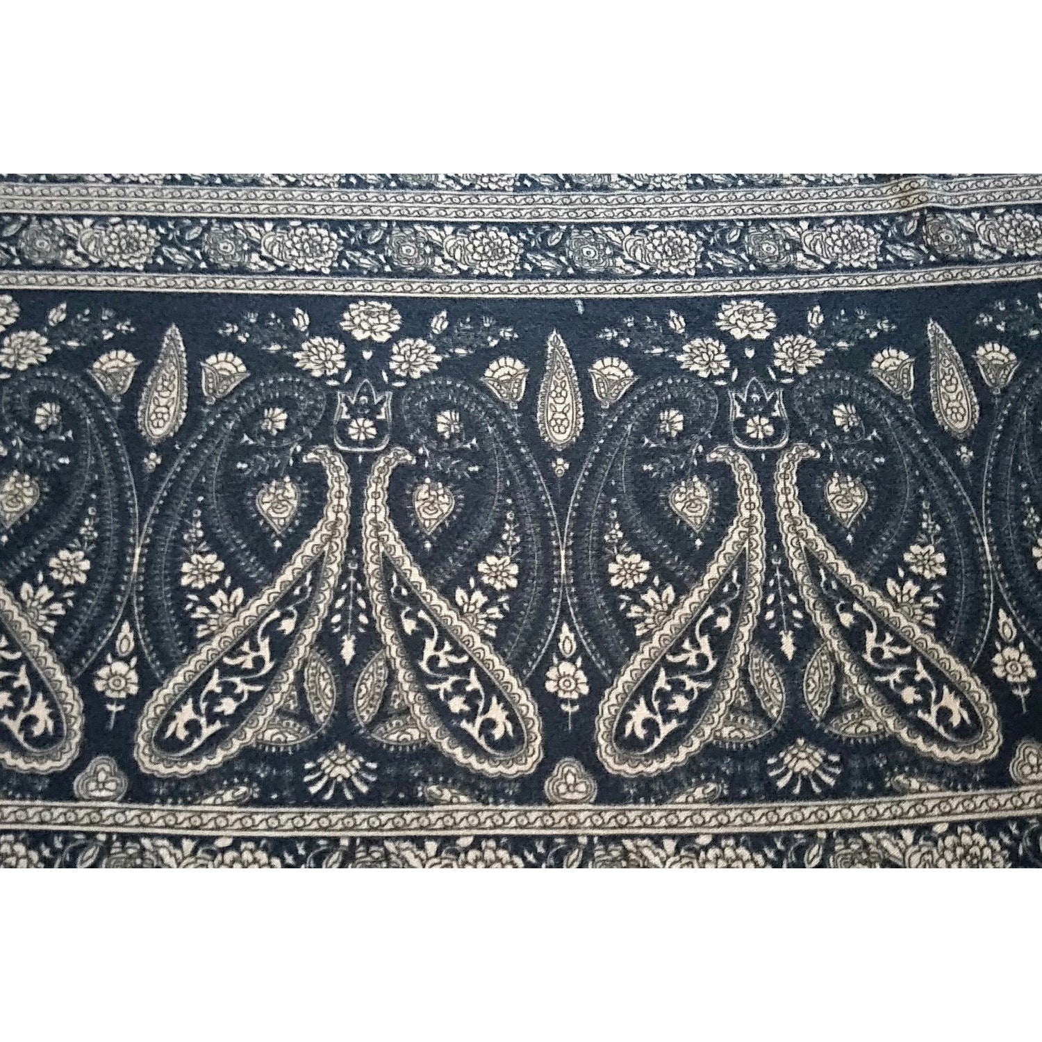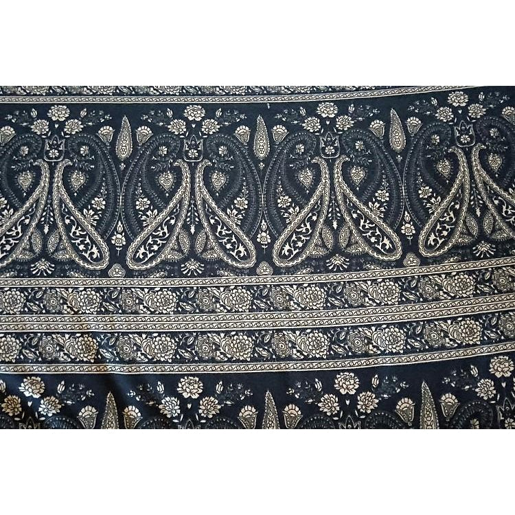 Beautiful soft knit fabric printed with a paisley, block design (25.5cm block) in charcoal and beige.