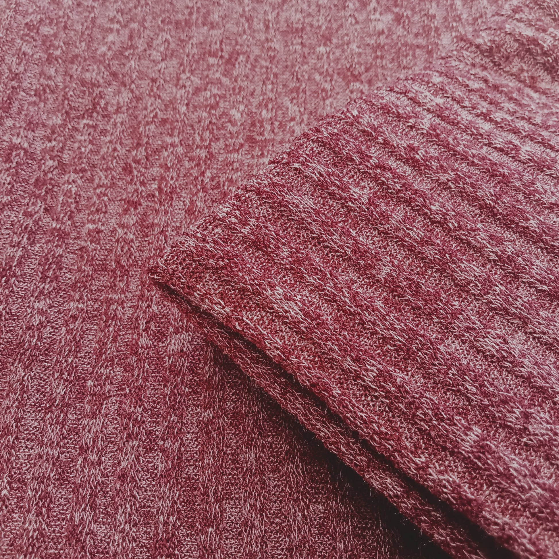 stunning rich ruburb shade knitted fabric in a rib design with a light mohair finish. Perfect for a top, skirt, lounge wear or dress.